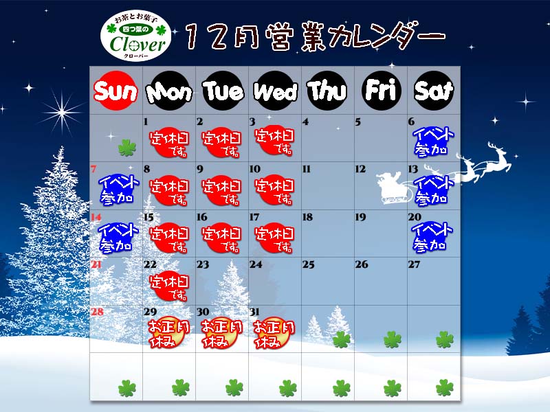 四つ葉のクローバー12月の営業カレンダー【変更】